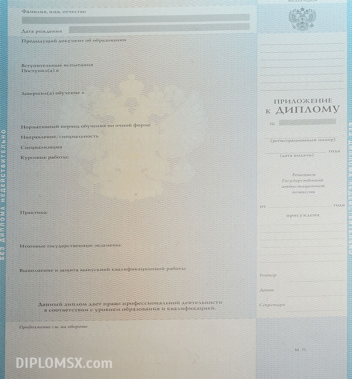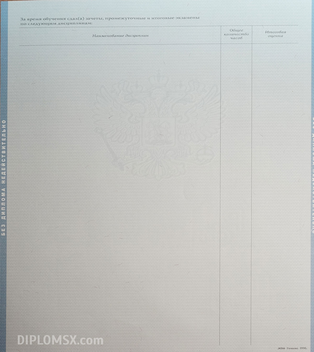 Мы работаем исключительно с оригинальными бланками государственного образца ГОЗНАК, имеющими все необходимые степени защиты, голограммы, водяные знаки и отличительные атрибуты настоящего документа об окончании Вуза. Если сравнивать наш диплом и типографскую копию, которую нередко предлагают другие организации, то документы, предоставляемые нами, выгодно отличаются по всем параметрам, потому что они являются подлинными. Их невозможно отличить от выдаваемых университетами и институтами. С ними легко трудоустроиться, можно пройти любую проверку и быть уверенным в своем будущем. Мы бесплатно доставляем документ по всей территории нашей страны и странам СНГ.